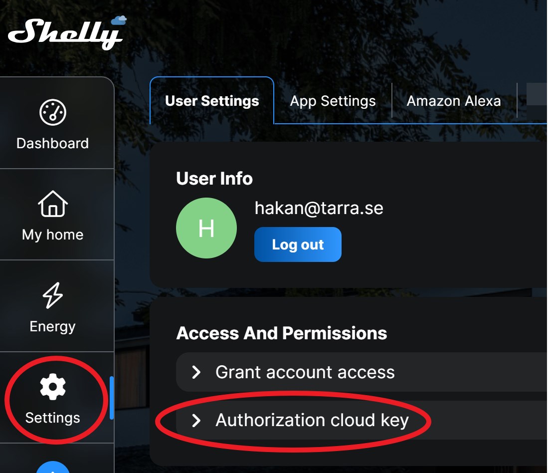 SHELLY_SERVER och SHELLY_AUTH_KEY hittar du här under Auth cloud key.