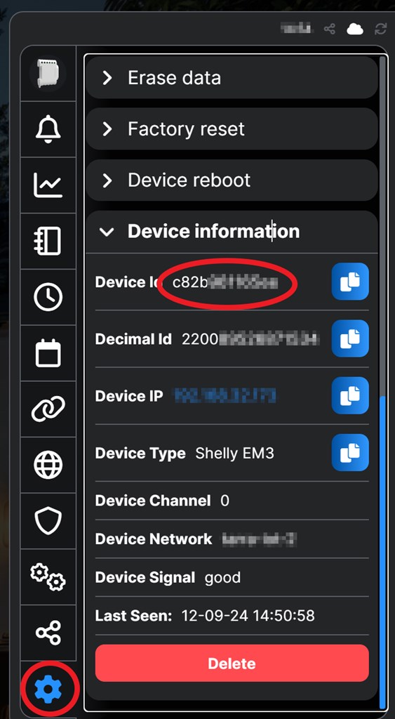 SHELLY_DEVICE_ID hittar du genom att öppna enheten du vill hämta information från i appen eller här och sedan "settings" och "device information".