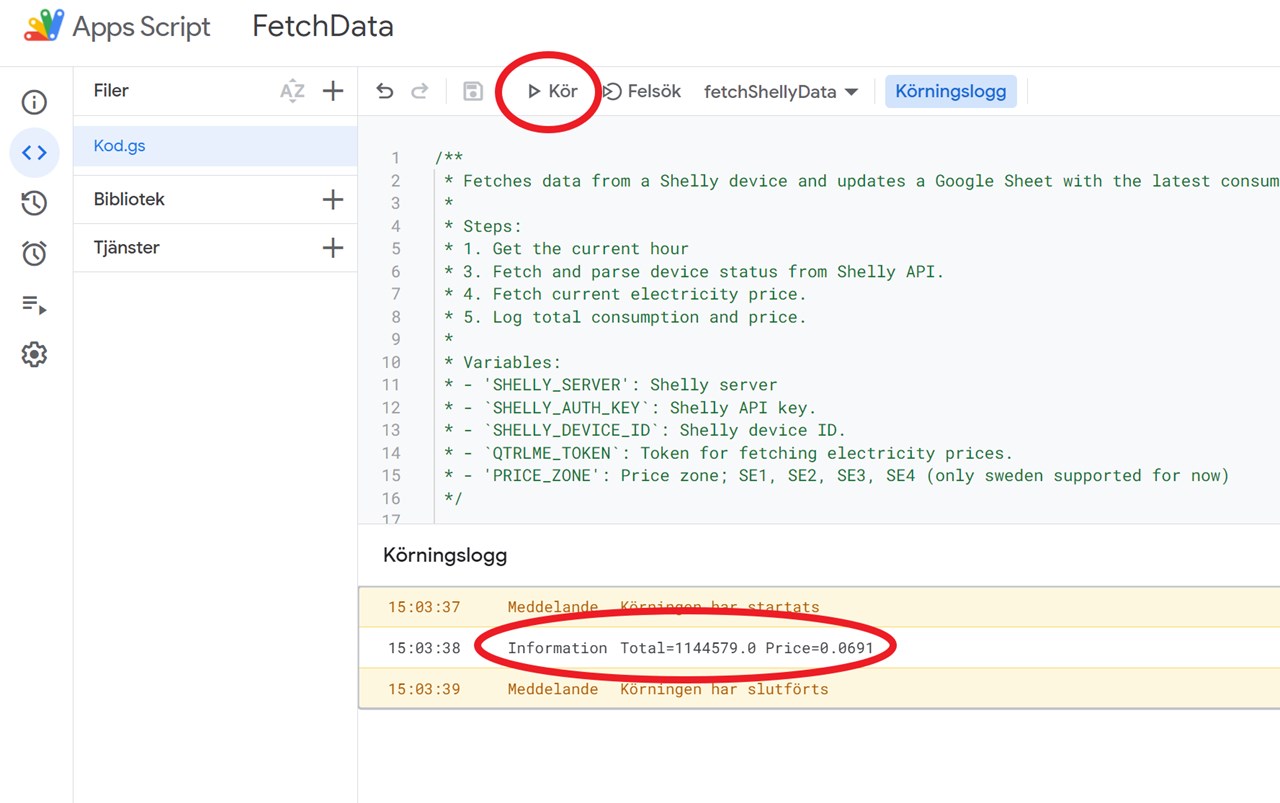 Om man vill få en överblick över förbrukning och även koppla samman det med timpriset så kan man logga detta i Google Sheet på ett enkelt sätt. Denna guide beskriver hur man gör det för Shelly 3EM men samma sätt fungerar med de flesta Shelly enheterna.