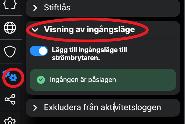På knappn ser man då ett sträck som visar om ingången är på eller av.