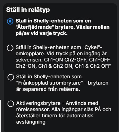 Shelly-enheter med både ingångar och utgångar är som standard konfigurerade för att styra utgångarna men kan också konfigureras för att användas fristående för att styra scener eller andra strömbrytare.