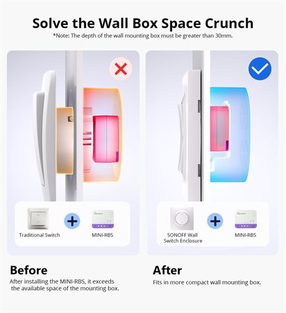 Notera, denna produkt behöver kompletteras med en Sonoff MINI-RBS/ZBRBS
