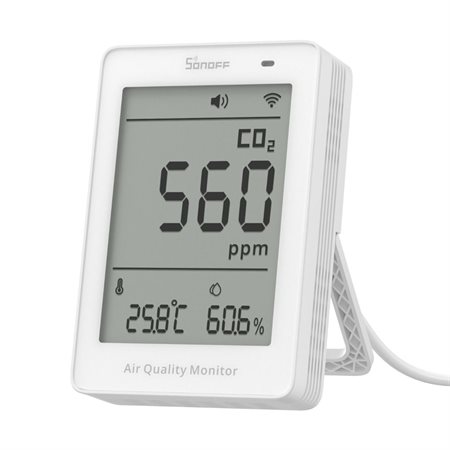 Homey Bridge Homey Pro IKEA Dirigera iHost Google Home Home AssistantSONOFF AirGuard CO2 (SAWF-08P) är designad för att tillhandahålla pålitlig luftkvalitetsövervakning i ditt hem. Med en NDIR-baserad CO2-sensorteknik övervakar den inte bara koldioxidnivåer utan även temperatur och luftfuktighet. Uppdateringar sker var femte sekund för att snabbt svara på förändringar i luftkvalitet. Produkten är särskilt lämplig för användning i miljöer där luftkvalitet är av betydelse för hälsa och välbefinnande.