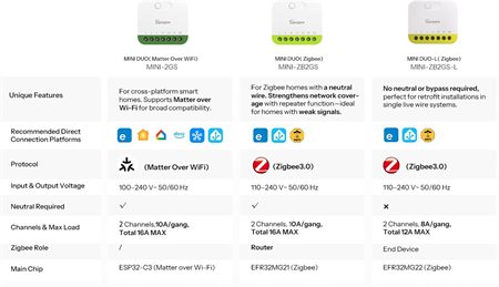 - Anslutning till Matter-aktiverade plattformar via SONOFF Zigbee Bridge Ultra.